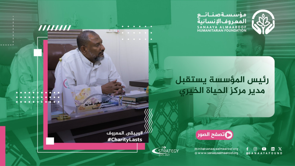 استقبل رئيس مؤسسة صنائع المعروف الإنسانية الأستاذ أحمد سعيد غانم، اليوم بمقر المؤسسة، مدير مستوصف الحياة الخيري الأستاذ نايف بن عبدالعزيز باعشن، في إطار تعزيز الشراكة والتنسيق بين الجانبين لخدمة القطاع الصحي.