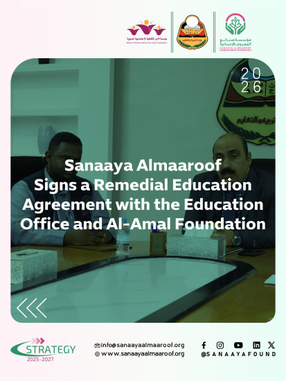 This agreement comes within Sanaaya Almaaroof Humanitarian Foundation’s ongoing efforts to strengthen effective institutional partnerships and support the education sector as a fundamental pillar of sustainable development and human capacity building.